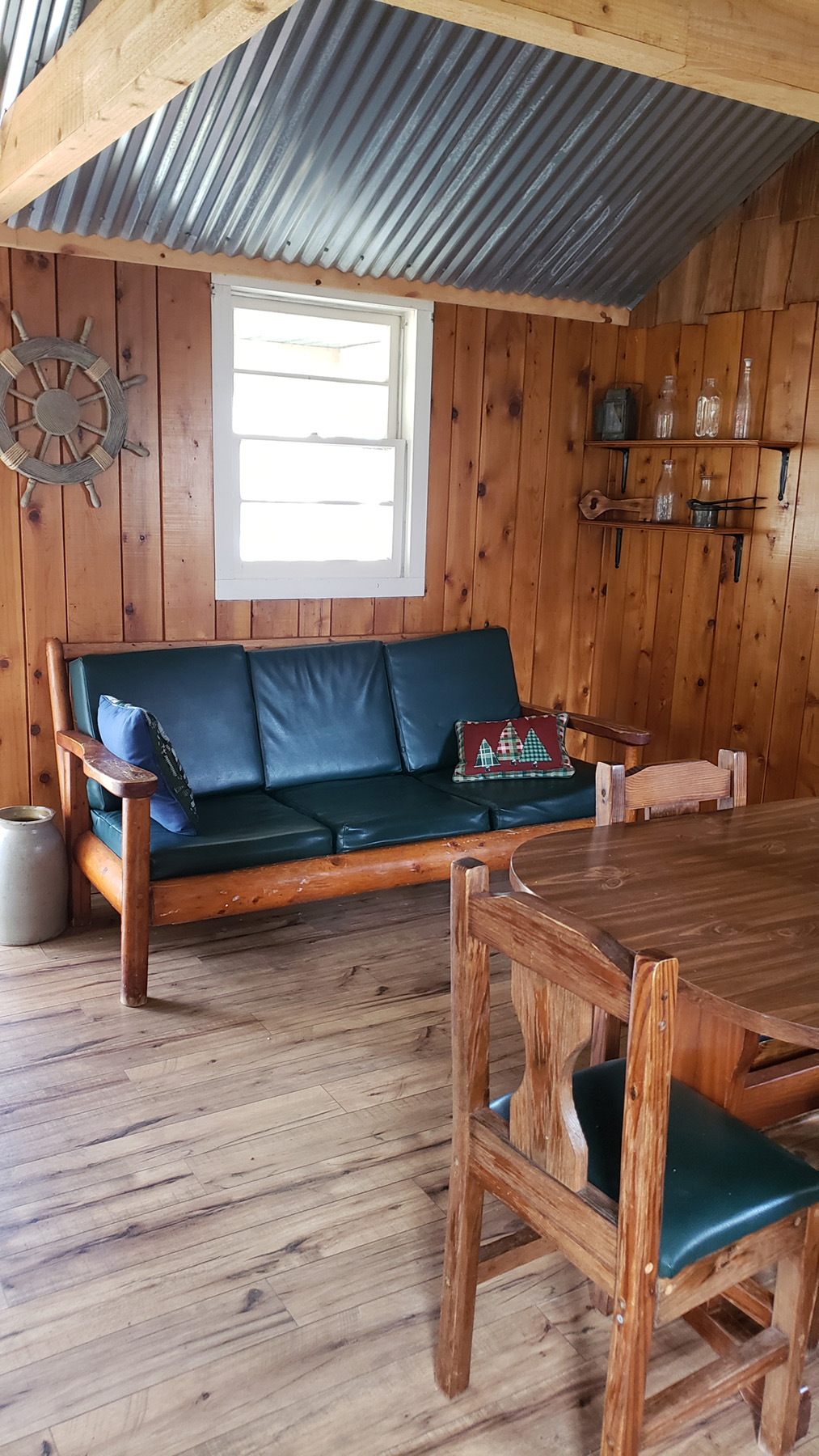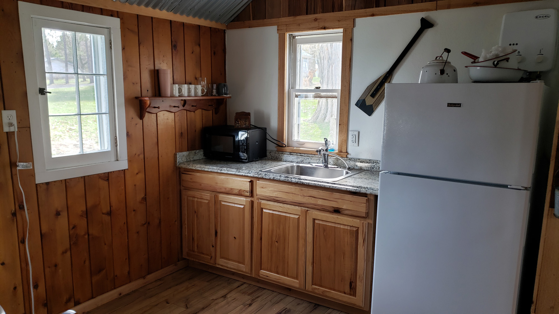 Enjoy the simplicity of a Northern Michigan getaway with this cabin. It features a kitchen, bathroom and two bedrooms – both with full-size beds. There is a full-size sofa sleeper in the cabin. The kitchen has a stove, fridge, sink and microwave. This cabin is equipped with a Keurig coffeemaker, towels, linens and place settings for 4 people. This is a rustic cabin with 20 amps of power and limited outlets. A fan is supplied. Maximum Occupancy is 4. 400 Sq. Ft.